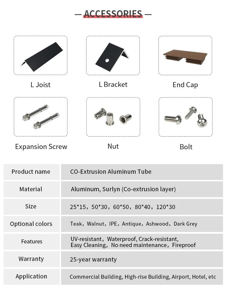 Superior Durability and Fire Resistance.The core of these tube is made from aluminum, offering unparalleled durability and a longer lifespan compared to conventional WPC products.